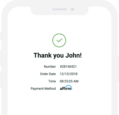 Choose Affirm as your payment option, provide your shipping details & enter your personal information. Affirm will provide a real-time loan decision. Select your preferred payment terms and confirm your loan.