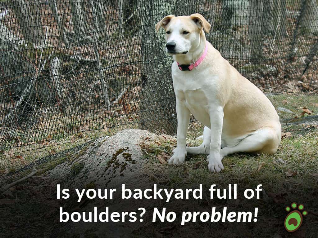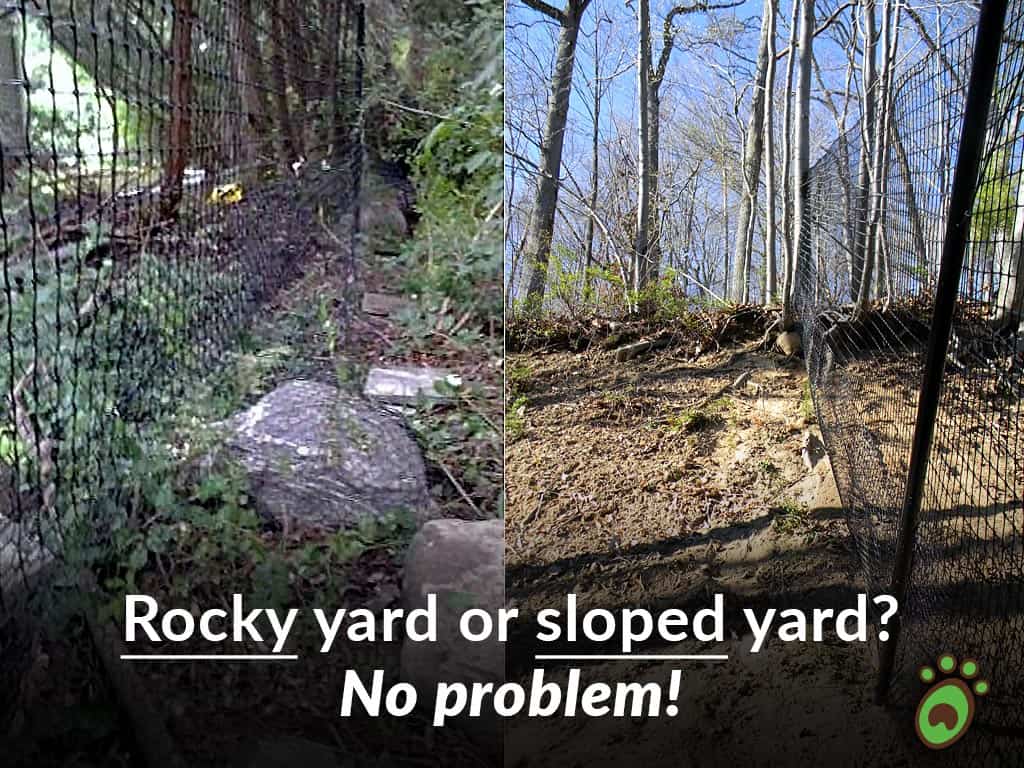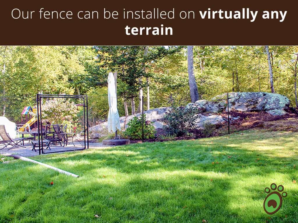 Pet Playgrounds fencing system is genius! They “think like a dog” and have covered every escape angle a dog can try. Can’t climb out, can’t jump out, can’t rip the fence, can’t dig out. Our fence goes up and down hill and over rock walls. Still safely containing our dogs after almost 10 years.