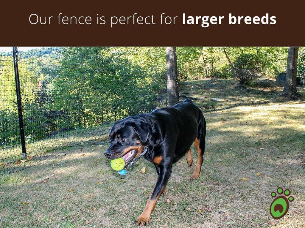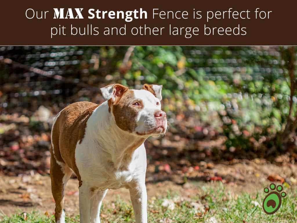 We have 2 Great Danes (175# and 156#) and ordered the Max-Strength Kit. We are absolutely thrilled with the fence. The pups are free to roam and are loving life! We are very satisfied with our purchase and highly recommend the fence kit.