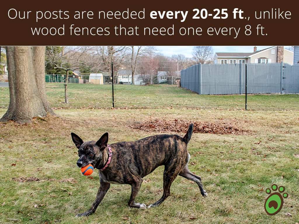 My dog has a habit of climbing any chainlink fences we would get and when we switched to a wooden one he would just plow through it. Not only has he not been able to plow through it but he can’t climb it either. I’m so grateful we finally found an answer that doesn’t hurt him