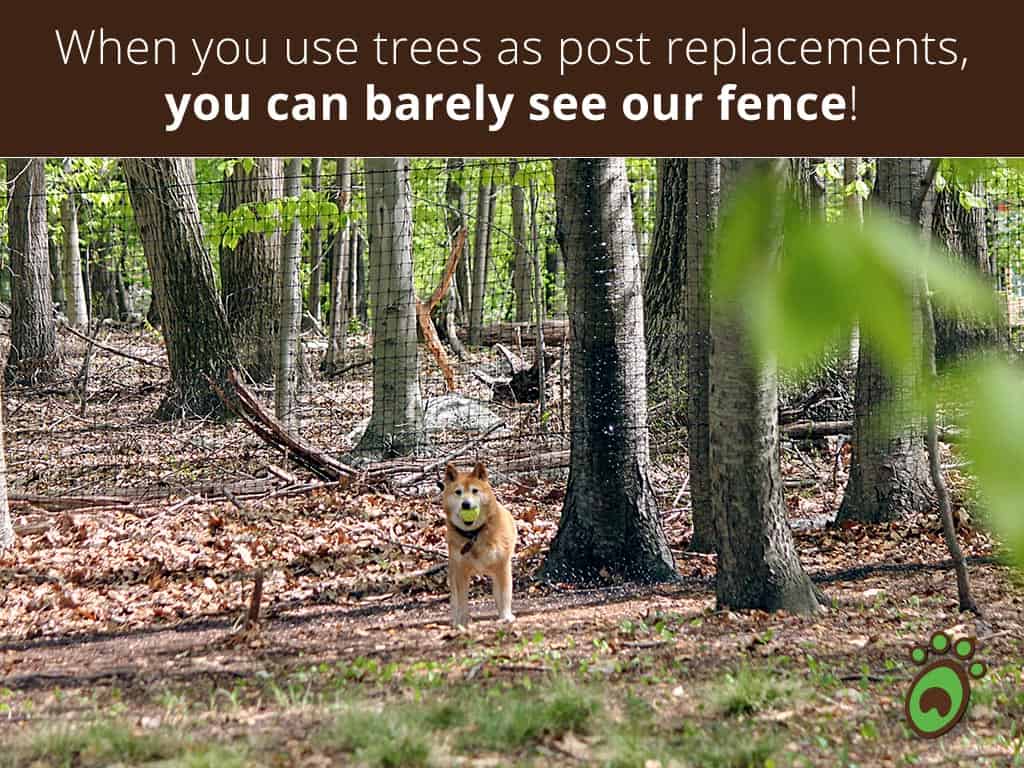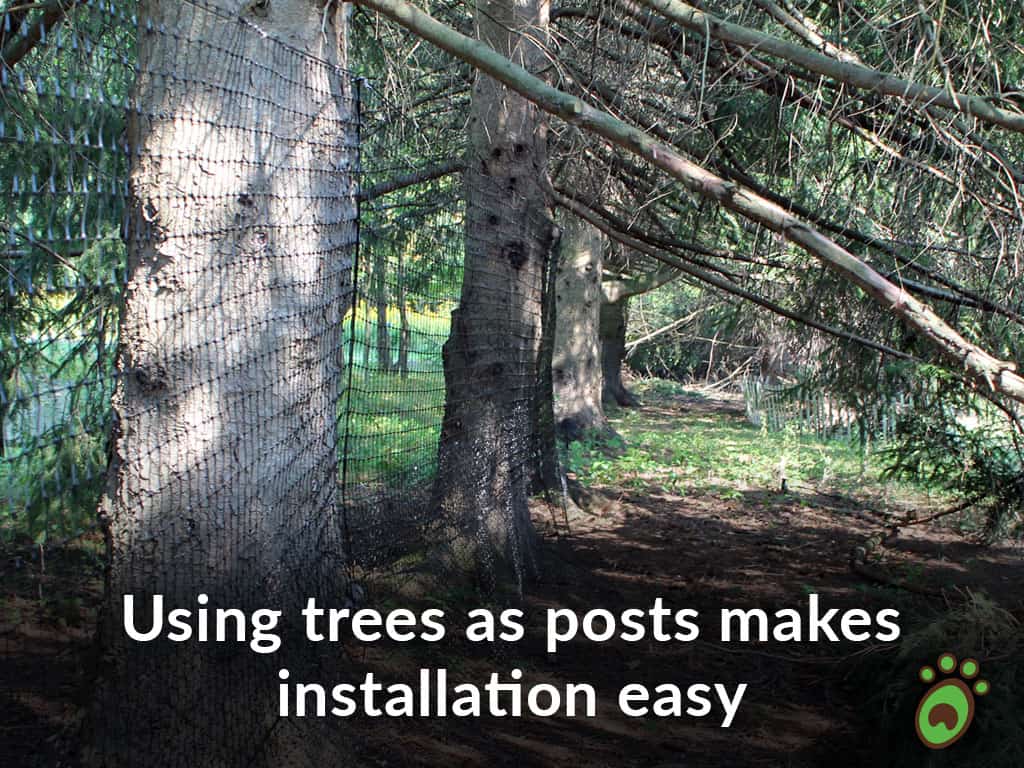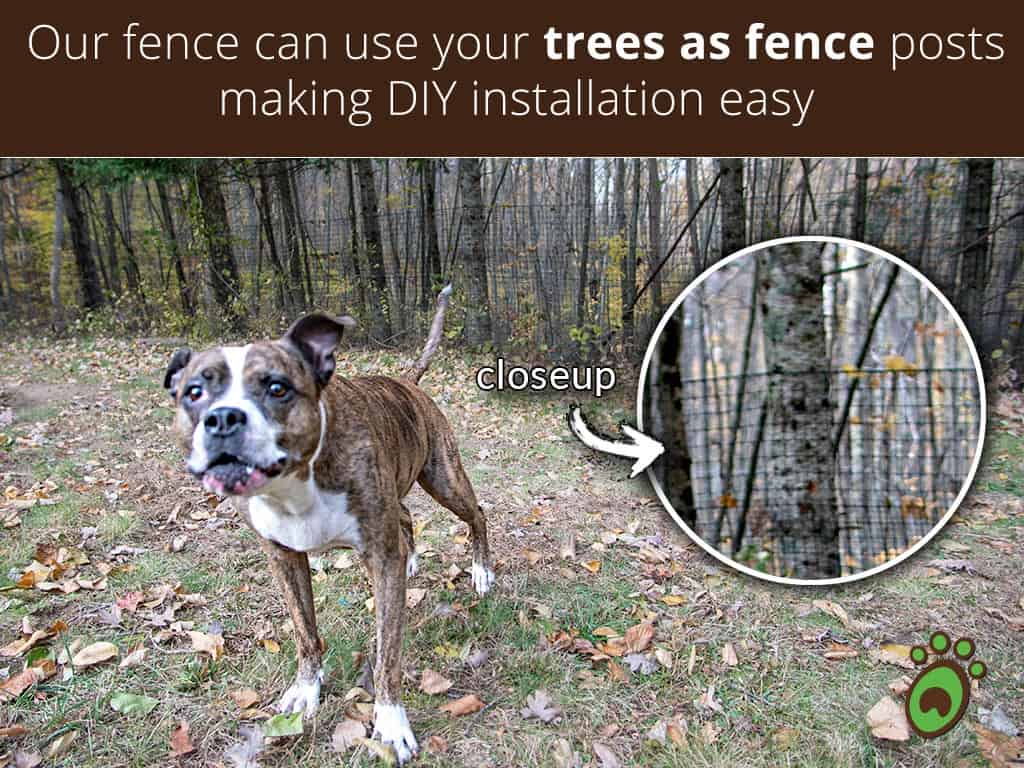 Overall very happy with this fence as an investment. I ordered a 5 foot tall, 600 linear feet fence kit for my large yard. It doesn’t obstruct our creek-view at all, so we love that! We were able to use two trees in the yard as posts (see photos).