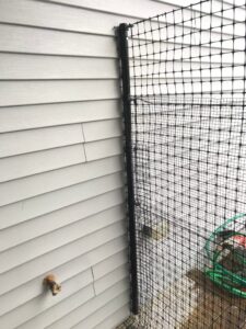 A Pet Playgrounds fence is the best dog fencing system that you can install for your dog. To prevent dogs from climbing over the fence we use a 1000 pound break strength polypropylene mesh which is incredibly strong, yet very flexible. This means that dogs can’t get a grip and climb over the fence like they can with chain link fences. It essentially feels like a net to dogs and other animals. This material is also incredibly strong. If you take a look at the video below, you’ll notice that a tree fell on one of our fences after a hurricane. We simply cut the tree to push it off the fence, and connected back the material with a hog ringer (a simple hand tool that we provide in our kits). The whole process took about 10 minutes. If this had been a wood or chain link fence you would have no other option but to remove the broken section and replace it entirely.