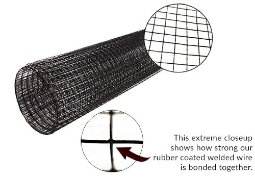Our standard Dog Fence Kit has been engineered to withstand up to 2,900 pounds of pressure, which is perfect for most dogs. However there are some breeds (and some individual canine personalities) that seem to chew and destroy just about everything. For these dogs we added a third layer of protection: our 19 gauge, steel, vinyl coated, welded wire mesh with a small 1/2 inch opening. This is used in combination with our two standard fencing materials, enabling the fence to withstand up to 4,000psi of pressure – Also 1/2 ” openings that are layered with 2 other one inch meshes, making it almost impossible for dogs to get there teeth into, the holes don’t line up and openings get even smaller with the layers overlapping