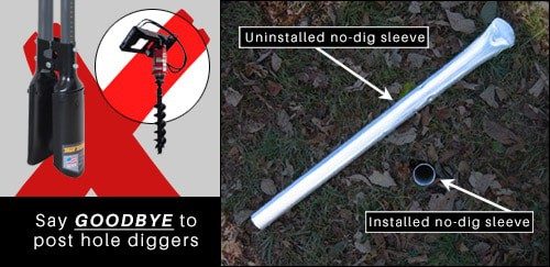 You will receive a NO-DIG sleeve for every fence post allowing you to “Say Goodbye!” to post hole diggers or shovels! Our NO-DIG sleeve system is what makes it possible to install your Dog Fence without digging or using cement.