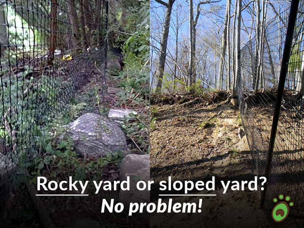 Our 1,100 pound break strength Polypropylene Mesh has been upgraded to a smaller one inch opening that makes it both incredibly strong and remarkably flexible. The small openings 1″ square adds chew protection in addition to the metal layers, Our newest Bitter Pro poly adds even more chew protection with a very bitter taste infused, the flexibility stops your dog from climbing over. Traditional fences (like chain link fences) act like ladders – and actually help dogs climb over. Our Dog Fence make this almost impossible in or out